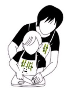 親子で同じエプロンを身につけることで、