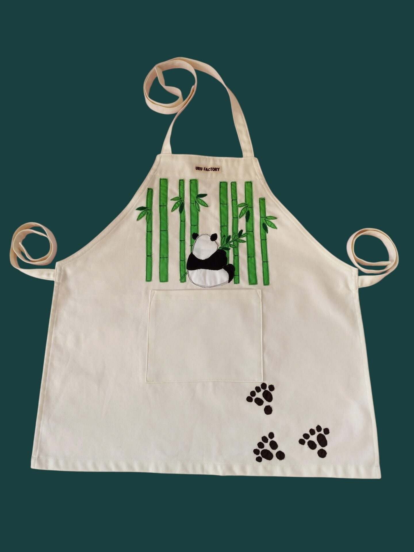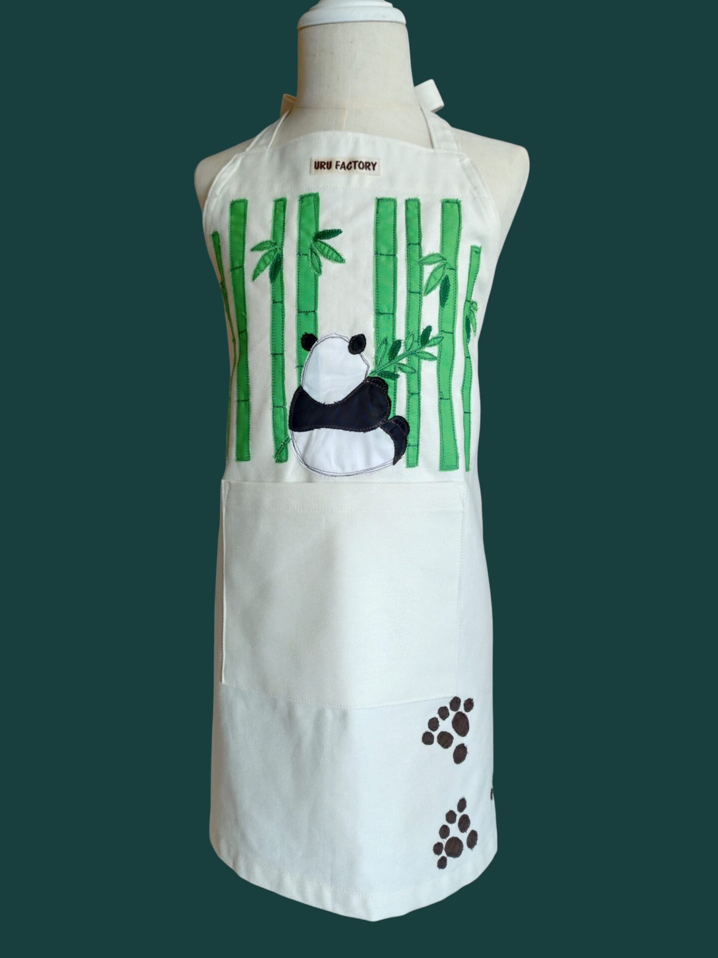 親子お揃い パンダのアップリケエプロンセット|大人用+子供用